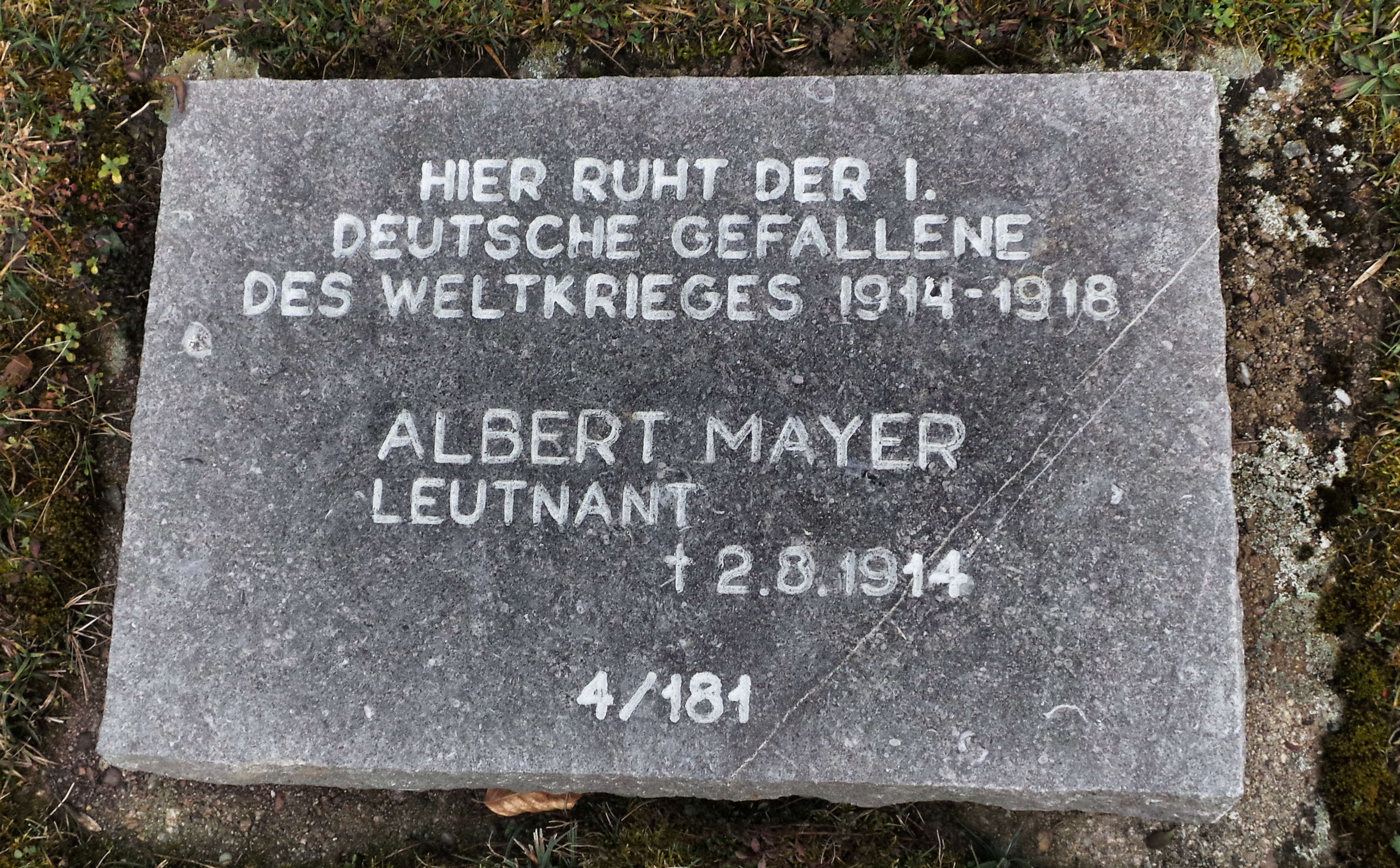 The cemetery has 1,964 burials and among them is Leutnant Albert Mayer who is recorded as being the first German battle casualty on the Western Front. He was killed near Joncherey on 2nd August 1914.