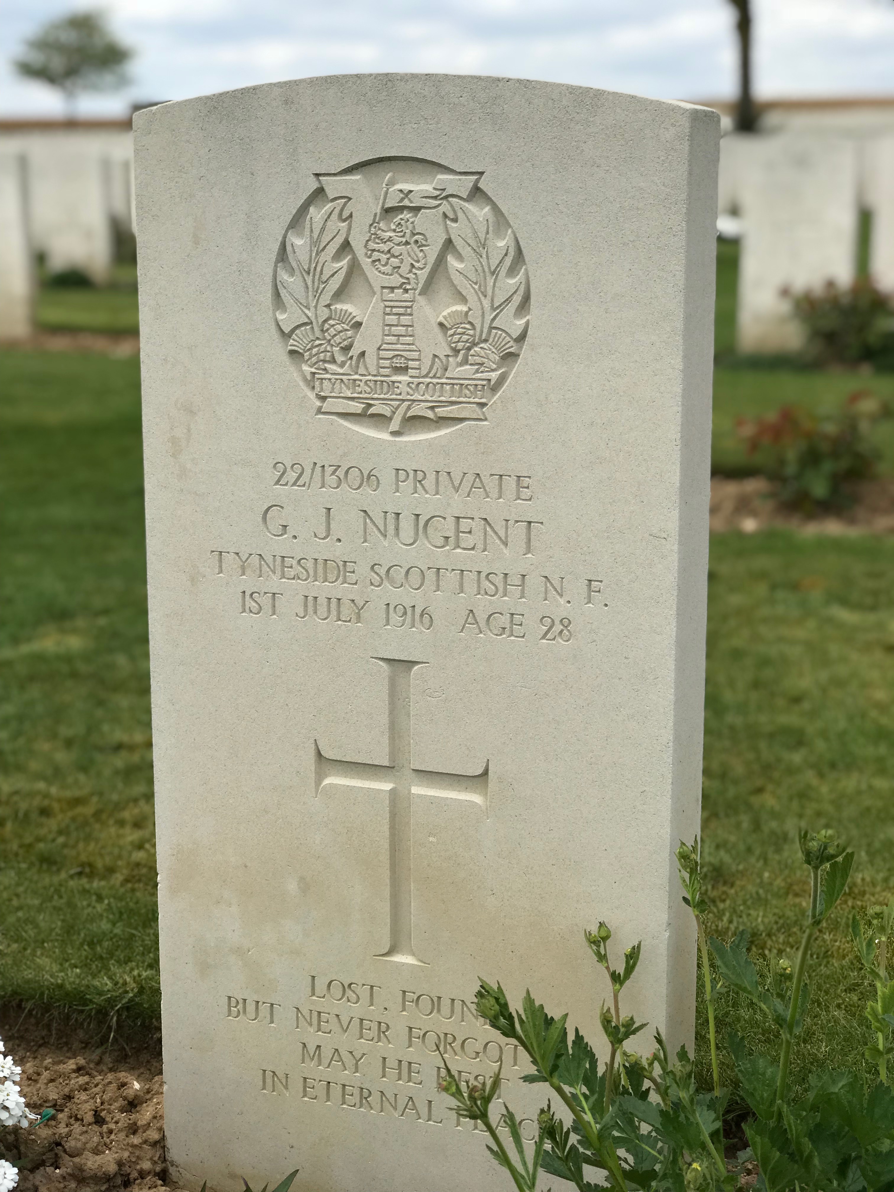 Killed and buried at the Lochnagar Mine Crater, his body was found there in 1999.