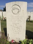 “For most conspicuous bravery and devotion to duty in attack. On nearing the objective, his company came under heavy machine-gun fire. Through Serjt. Forsyth’s dashing leadership and total disregard of danger, three machine-gun positions were rushed and the crews taken prisoner before they could inflict many casualties on our troops. During subsequent advance his company came under heavy fire from several machine guns, two of which he located by a daring reconnaissance. In his endeavour to gain support from a Tank, he was wounded, but after having the wound bandaged, he again got in touch with the Tank, which in the face of very heavy fire from machine guns and anti-Tank guns, he endeavoured to lead with magnificent coolness to a favourable position. The Tank, however, was put out of action. Serjt. Forsyth then organised the Tank crew and several of his men into a section, and led them to a position where the machine guns could be outflanked. Always under heavy fire, he directed them into positions which brought about a retirement of the enemy machine guns and enabled the advance to continue. This gallant N.C.O. was at that moment killed by a sniper. From the commencement of the attack until the time of his death Serjt. Forsyth’s courage and coolness, combined with great power of initiative proved an invaluable incentive to all who were with him and he undoubtedly saved many casualties among his comrades.”