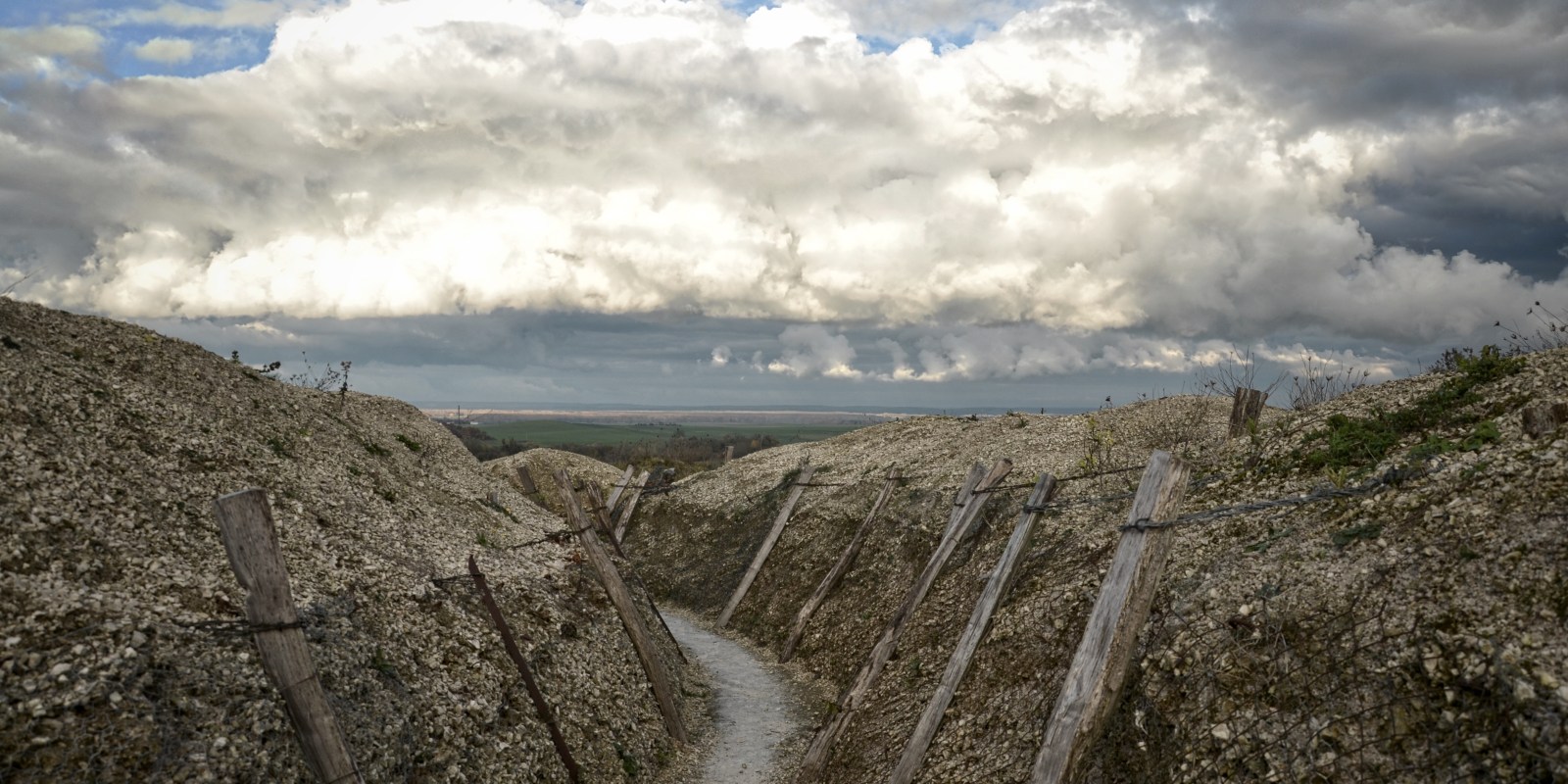 Trenches that look anything like what they did a century ago are very rare but this site in the Champagne is quite amazing and has featured on this site before. This image was taken this week looking out across the fields where the fighting was very heavy in September 1915. A full article on this site will appear on WW1 Revisited this winter.