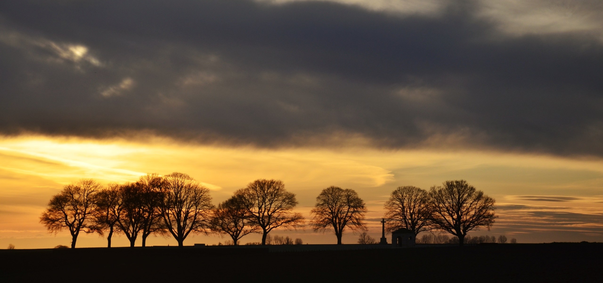 A late October sunset looking north towards Courcelette British Cemetery on a battlefield fought over in September 1916. Taken with a Nikon D7000 in 2012.